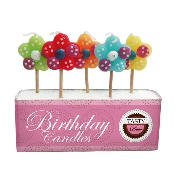 Velas flores. Medidas: 8 cm. Caja de 12 blíster, blíster 5 unidades.