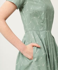 Vestido manga corta de color verde con estampado de bambú.